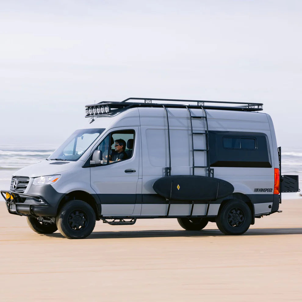 Carry your boards securely with the Sprinter Exterior Surf Rack Set, designed for Sprinter 144/172 models (2008–2024). Lightweight yet durable, this rack system makes it easy to transport surfboards or other gear while maintaining a sleek, low-profile fit on your van.